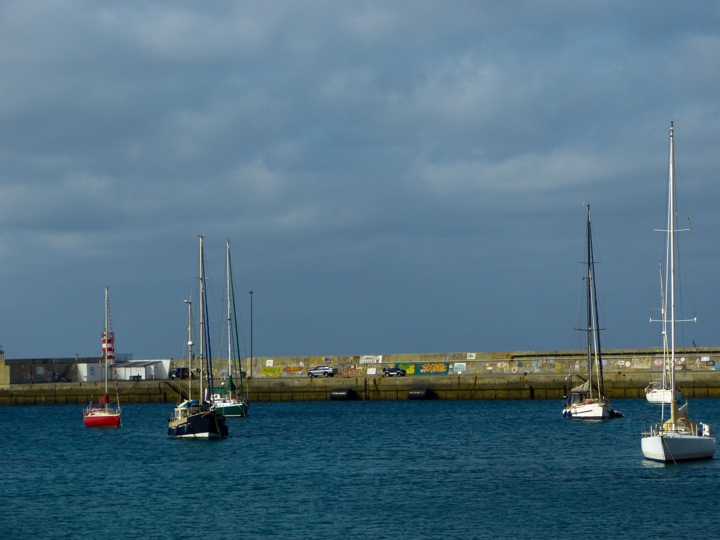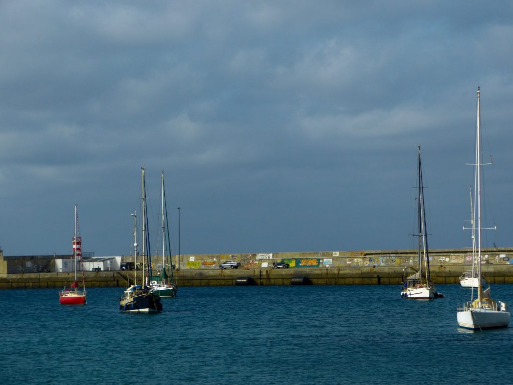 Arrivés au sud ouest de l’ile, le vent forcit. Je suis surprise et prends un 2eme ris…..Coclico avance……..Il fonce même………Et puis cela se calme au sud de l’île …..vraiment………Arrivée au moteur dans le port. Maurice m’accueille, puis ……Patrick, …..puis Patricia. Maurice et Patricia vivent sur leurs voilier de 13 mètres et et Patrick vient de boucler un tour d’Atlantique……..Encore pleins de rencontres fort sympathiques…..Bavardages et formalités réalisées à la police du port.