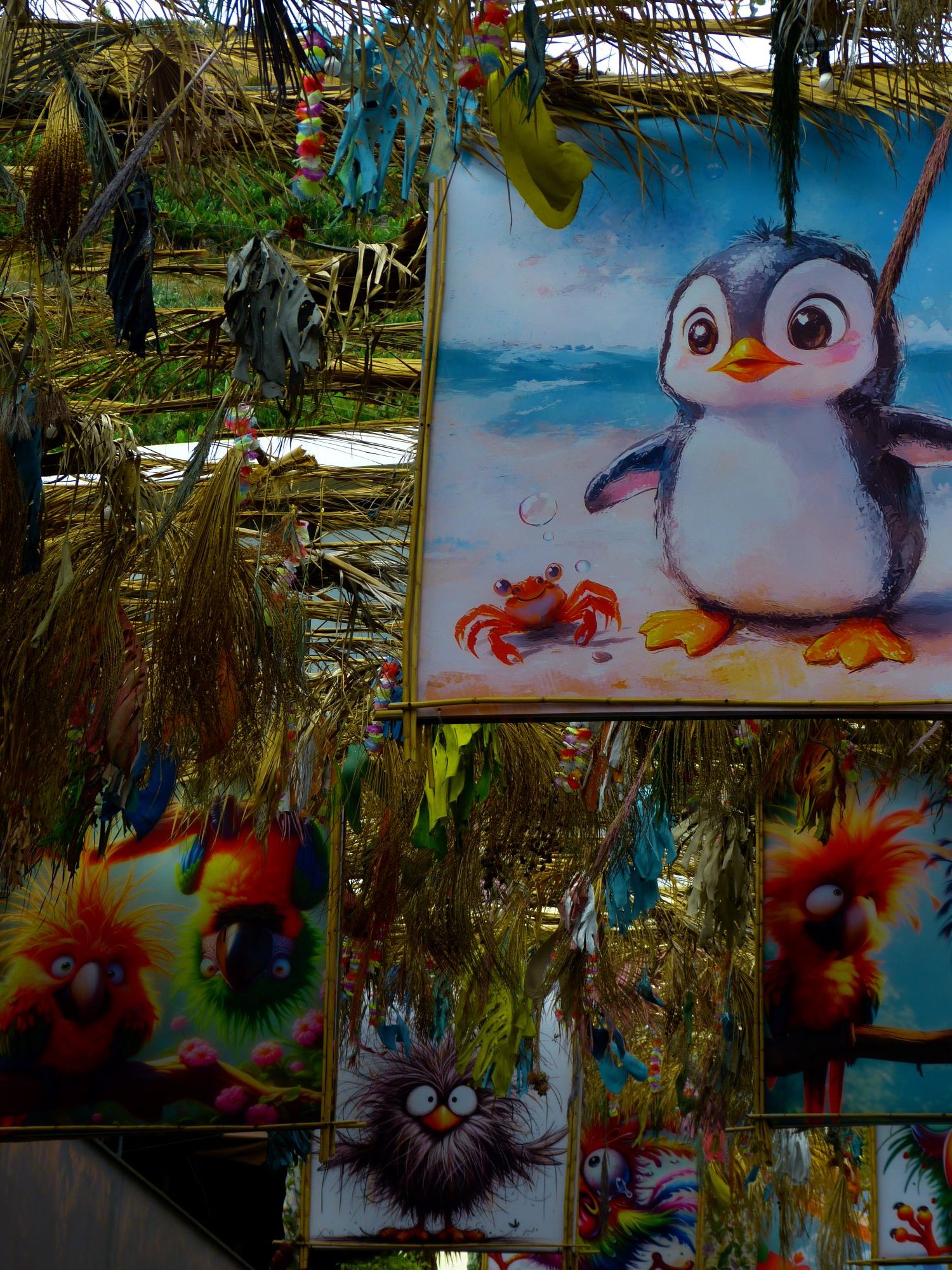 Visite des environs de Puerto de Rosario : des écureuils dans les rochers, des maisons en pierres, de plages avec galets et du ciel bleu, des dessins sur les façades……