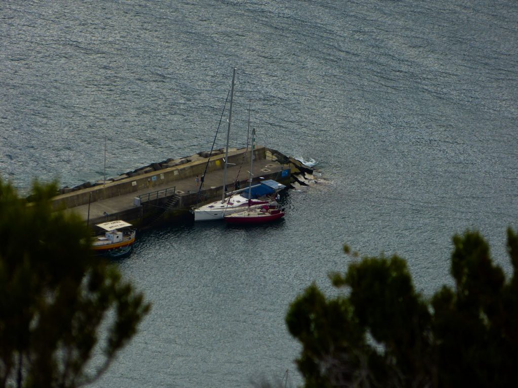 A la sortie du port, du vent, il y en a. Mais Coclico et moi sommes protégés des vagues grâce à la cote………….jusqu’au sud des iles Désertas. Et là, cela remue et c’est très désagréable : les vagues sont courtes. On va dire que la mer est agitée. Au sud des iles Désertas, il y a une remontée de fond qui crée ces remous. Je le savais et j’y suis allée.