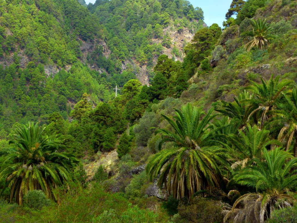 La Palma est nommée la isla bonita……………elle est verte. Les monts bloquent les nuages. L’occasion, pour moi de grimper………………….un peu….Et c’est vrai que c’est joli. De la verdure, des avocats en bord de chemins. Et une maison dans une grotte….
