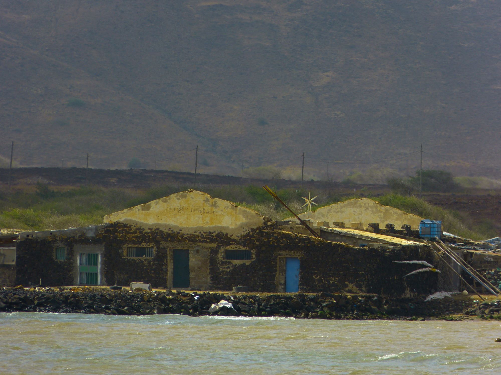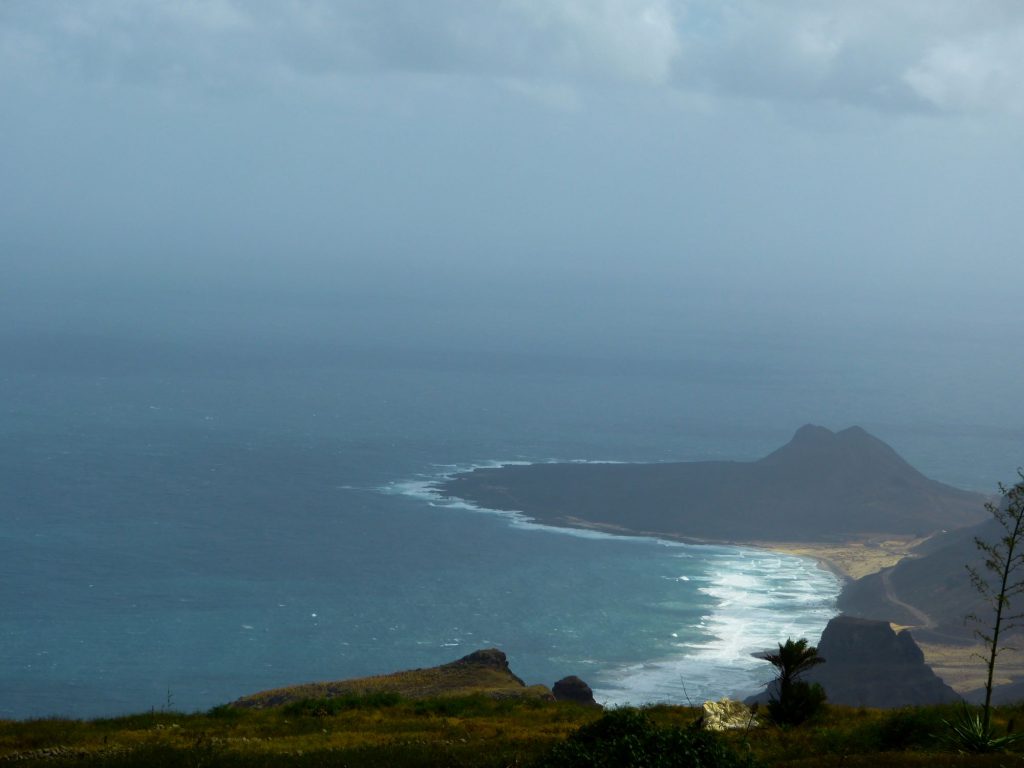 Sao Pedro – Sao Vicente Visite de Sao Pedro, un petit village de pêcheurs situé au Sud Ouest de Sao Vicente……enfin, plutôt randonnée pour atteindre le phare. Et bavardage avec le gardien du phare : il y travaille 365 jours par an depuis 10 ans ……..et trouve le temps long…..