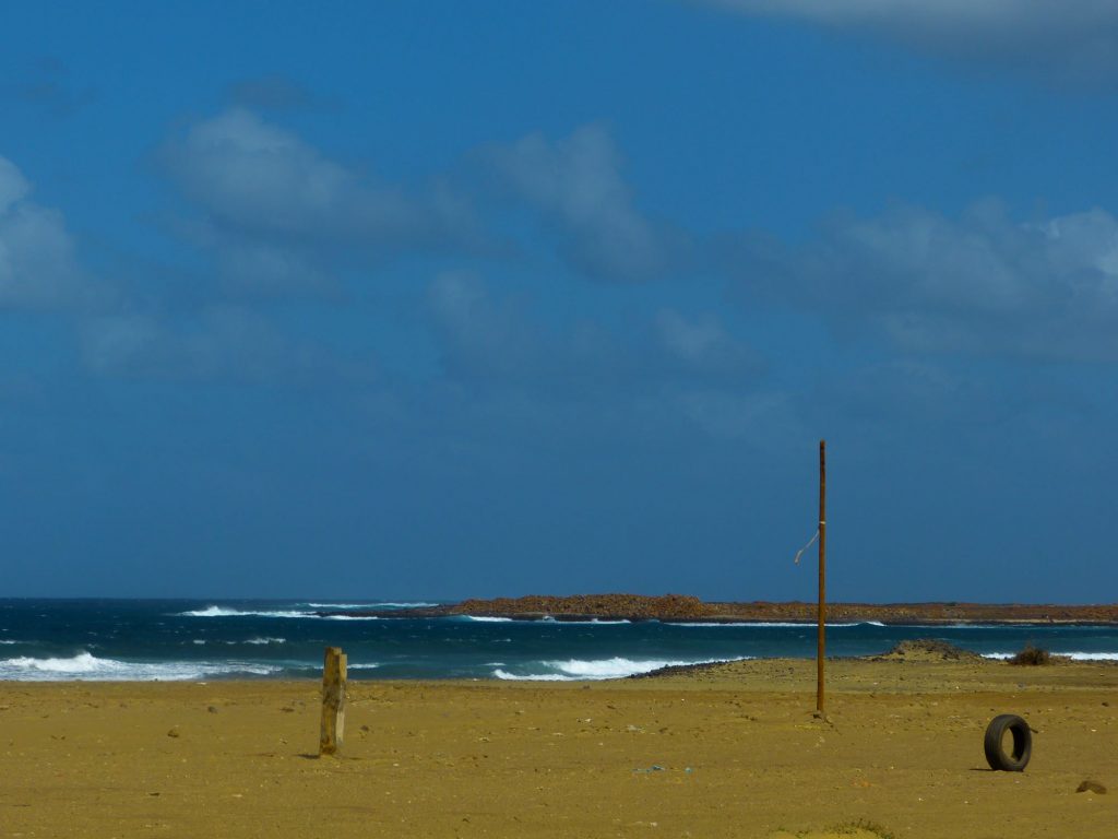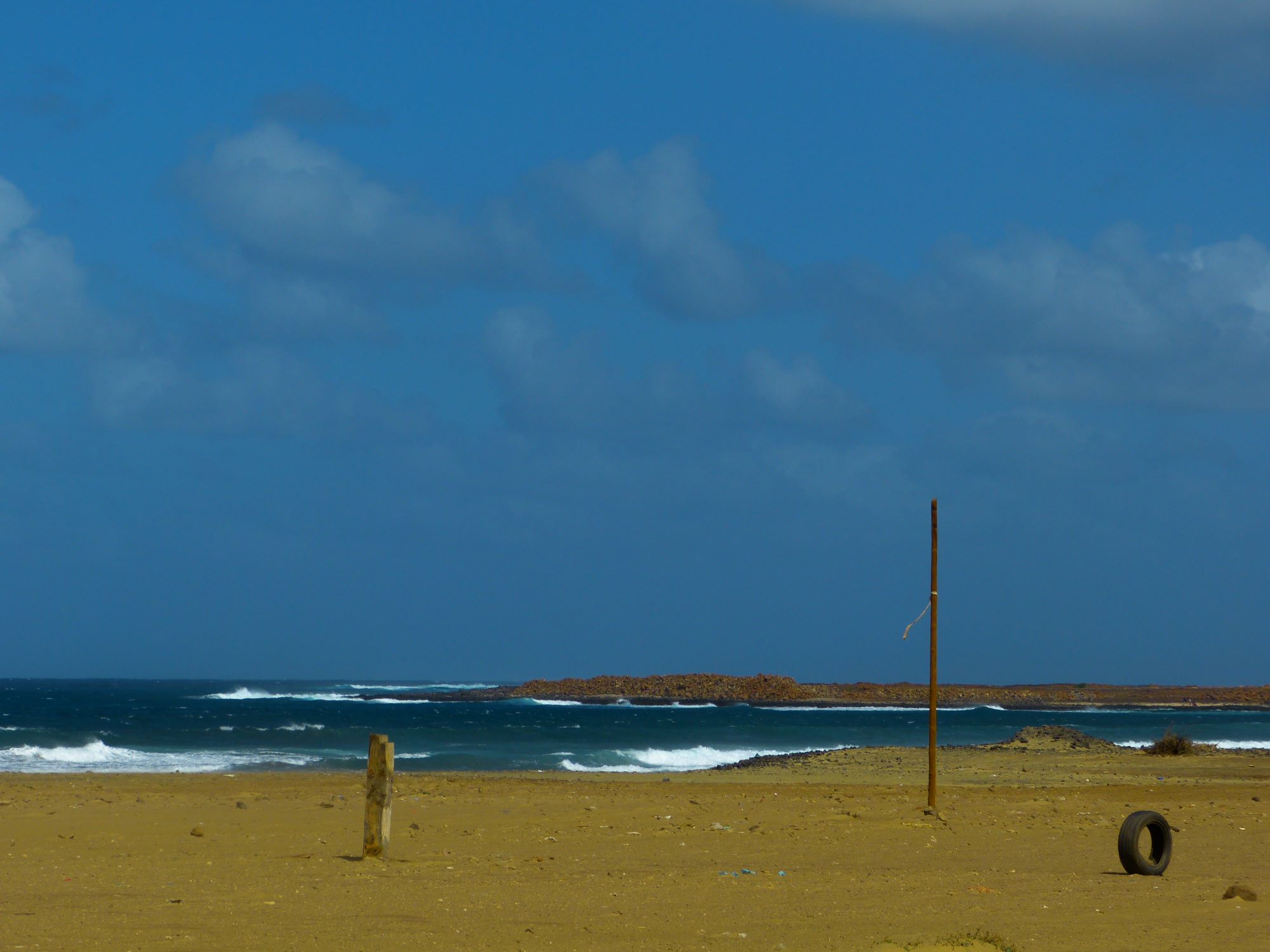 Et puis, sur le ponton, rencontre avec Barbarito, un espagnol vivant en pays basque espagnol venu aider son ami sur son voilier. Le davier est à réaliser. Il y a aussi Carl qui vient me voir sur Coclico. Français, il est content de voir une compatriote. Il vient de Rabat avec son voilier qui n’a ni pilote automatique, ni régulateur d’allures, ni cartographie électronique…..Chapeau. Le lendemain, tour de l’ile (surtout le NE) en vélo. Carl propose de m’accompagner et de retrouver Barbarito et ses acolytes faire du surf. Je découvre alors les paysages arides et les pistes de sable………Le désert ?………..Mais pas la plage où surfent Barbarito et ses amis.
