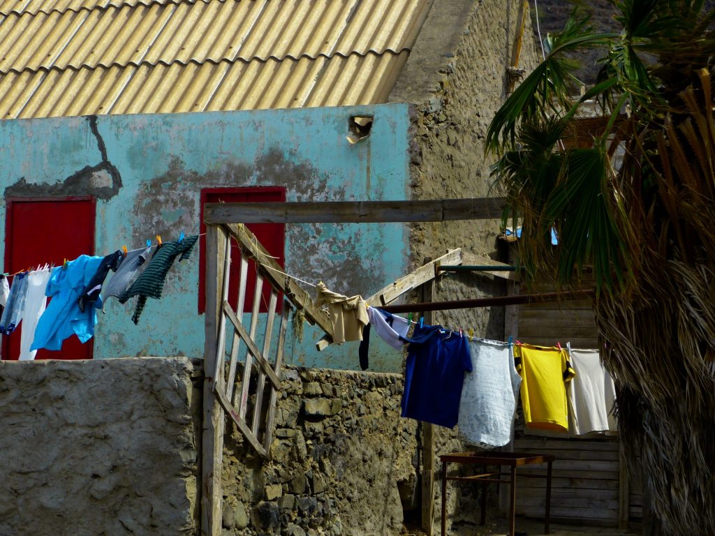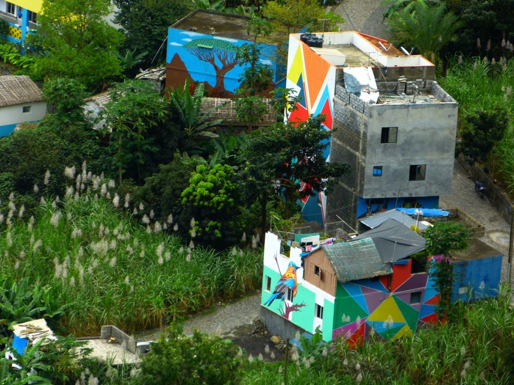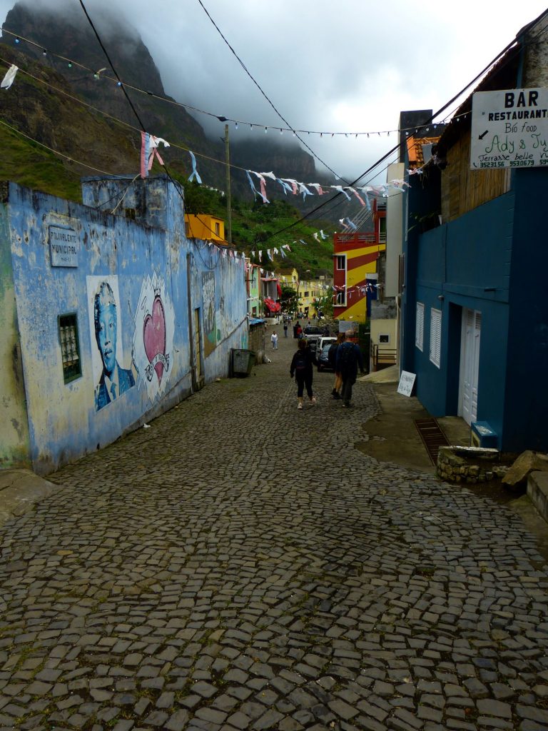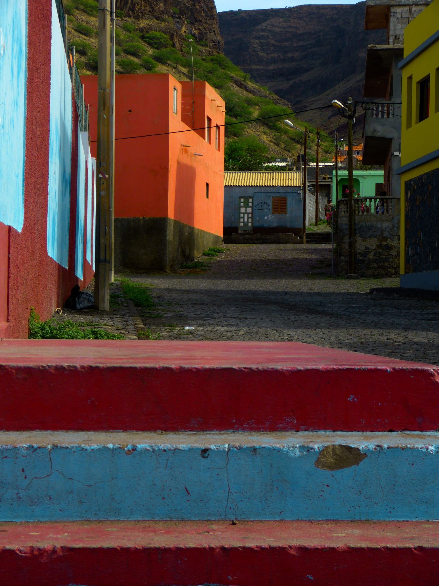 Et la descente continue pour atteindre le village Tabouleiro. Petit village coloré et où l’on y mange bien. Ady et Juju, un couple de cap verdiens parlant français, tiennent un restaurant où les randonneurs se restaurent.