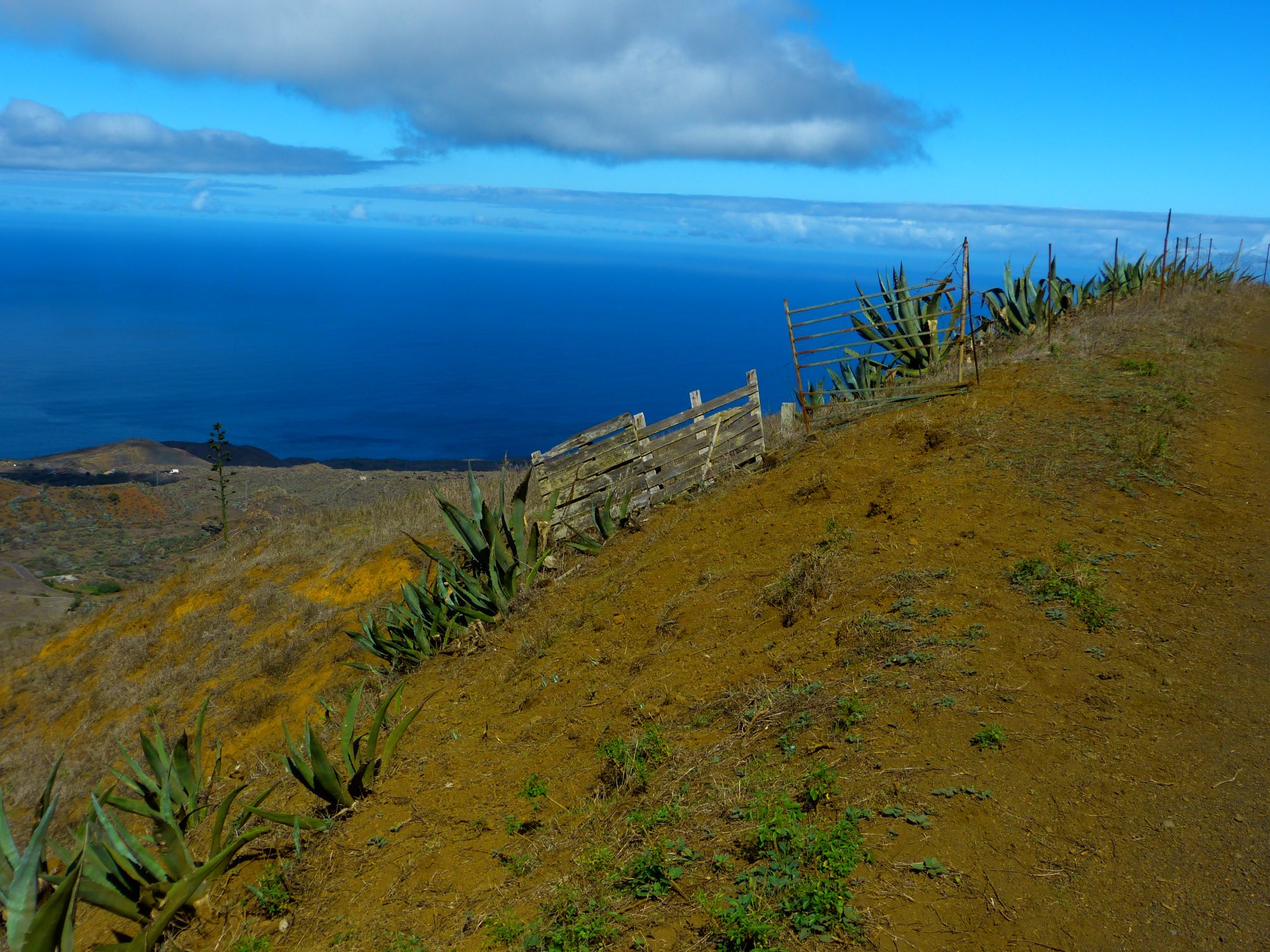 Nouvelle ballade à El Hierro, ile qui vit de son agriculture. J’emprunte le bus jusqu’à Pozo de la Salud et prends les sentiers de randonnées. Traversée du village de la Sabinosa.