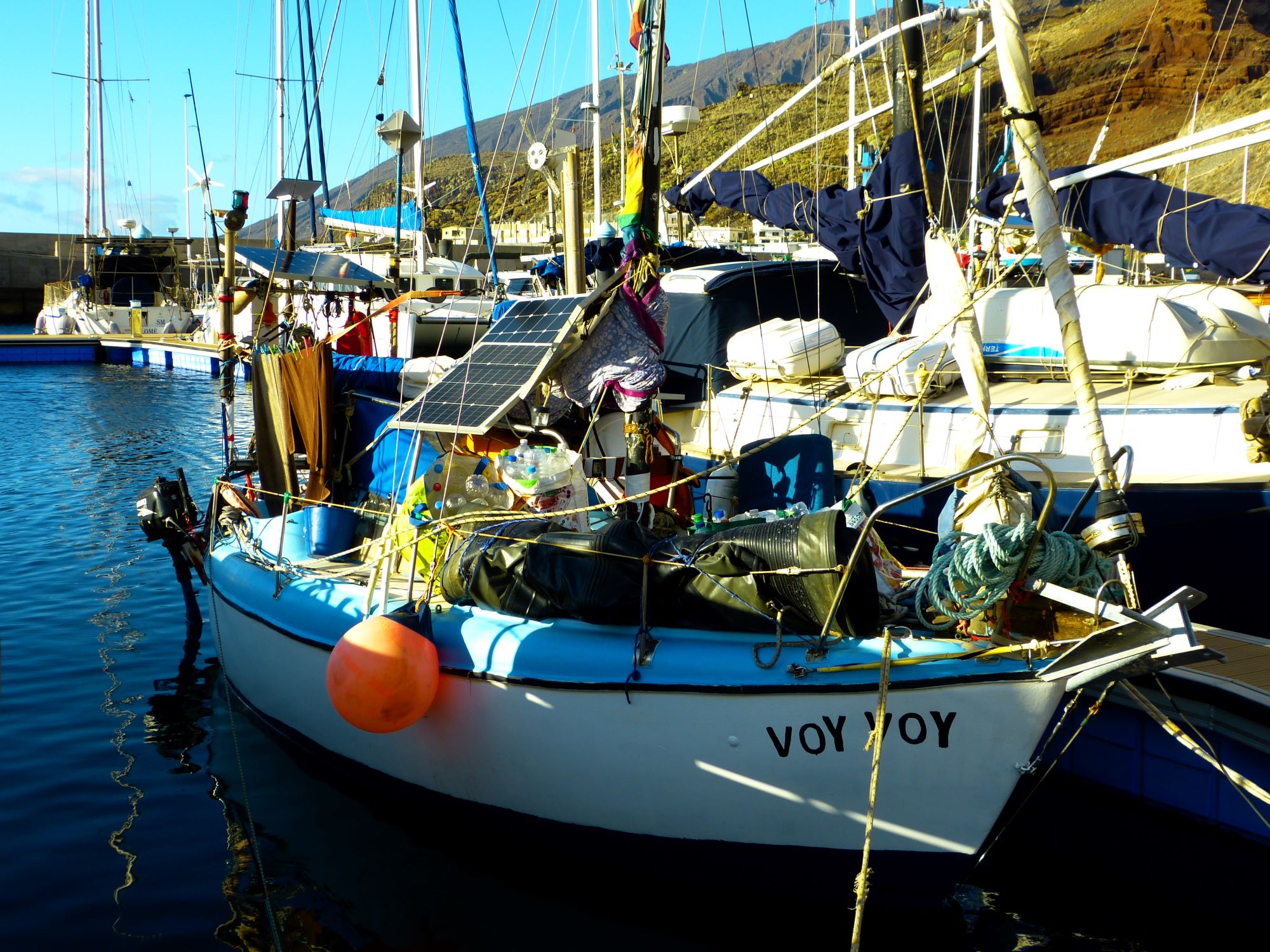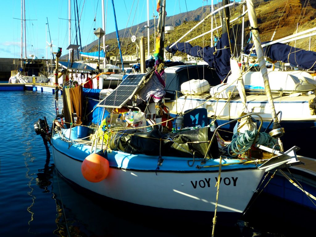 Ma voisine de port s’appelle Bebel et vient de La Palma. Nous avons discuté, l’ occasion pour moi de parfaire mon espagnol. Elle vient d’ acheter son voilier de 9 mètres et vit seule dessus. Bebel est atteinte d’une maladie auto immune (elle est rapidement fatiguée). Mais dans un mois, elle part naviguer…………Peut être se croisera t’on à nouveau ? Ce sera pour moi avec grand plaisir.