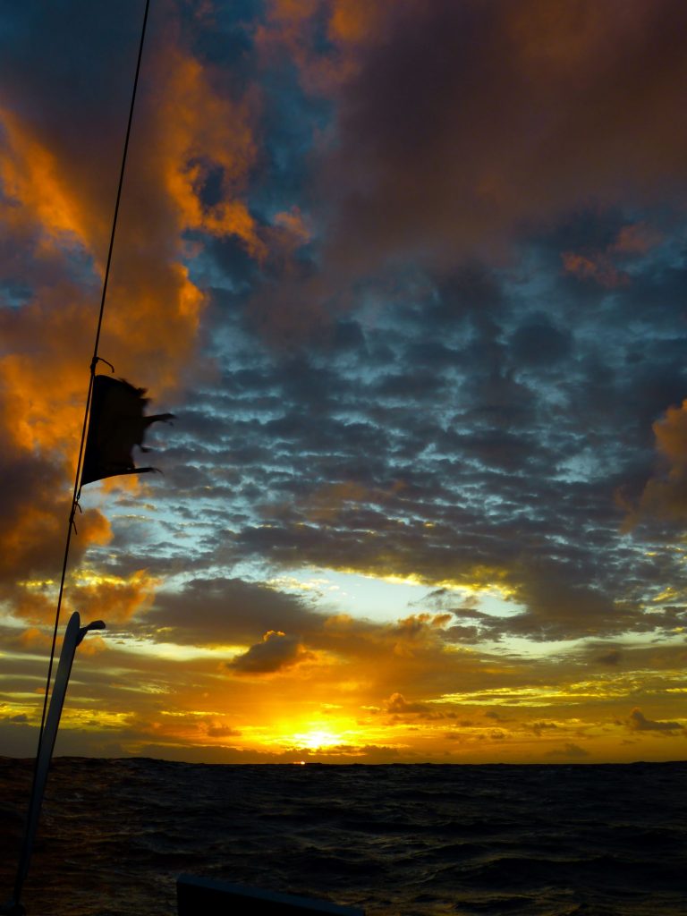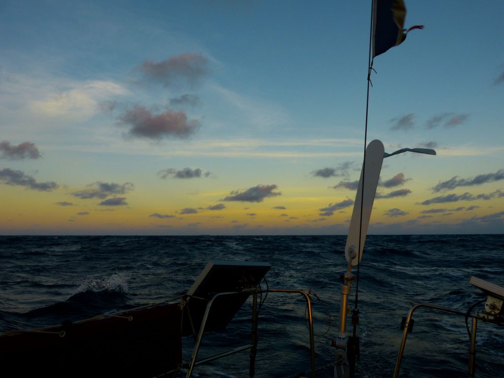 15h30 : Je commence à ressentir le décalage horaire du fait du changement de longitude depuis le Cap Vert. Le soleil se lève plus tard et se couche plus tard.